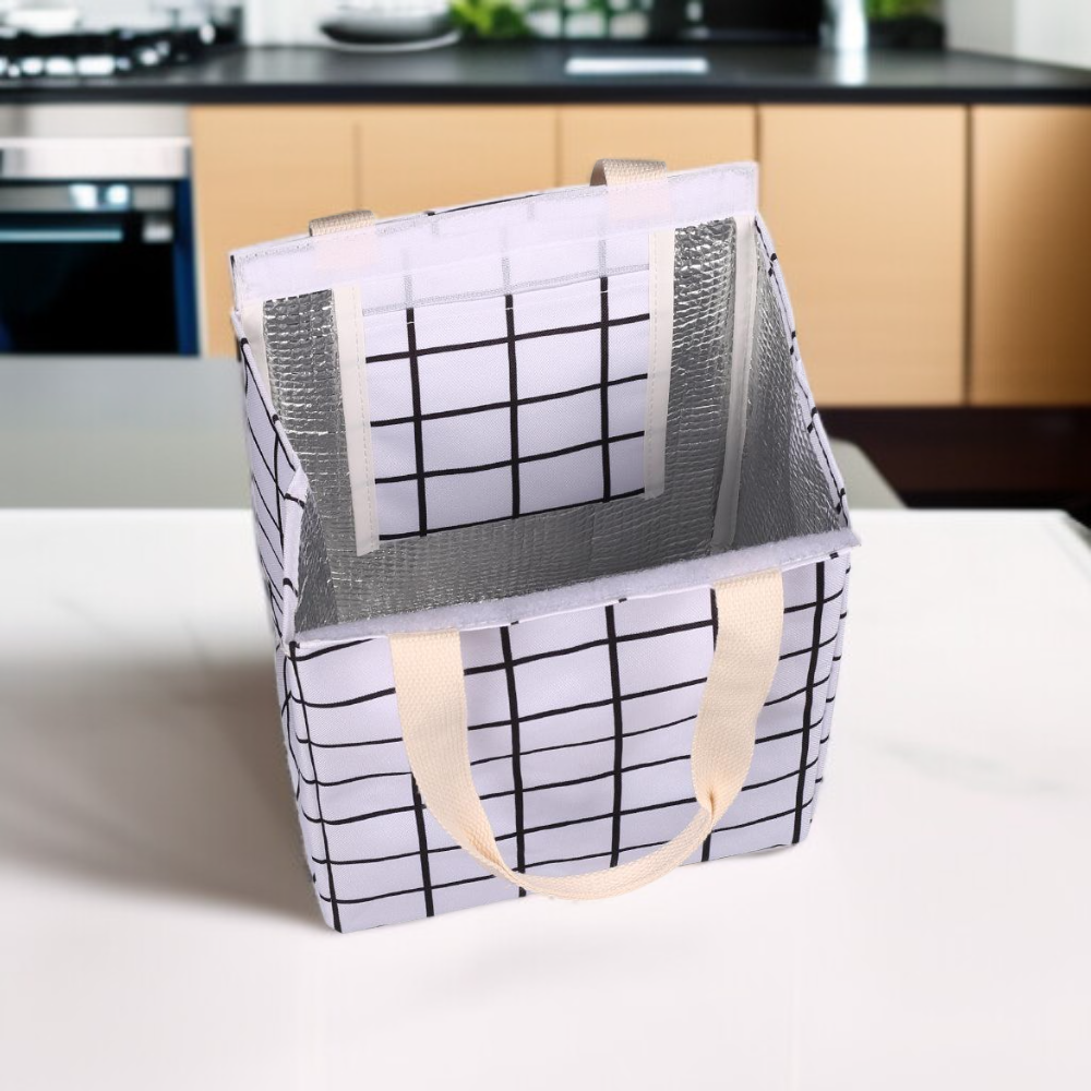 顏色:手提午餐包白色方格、手提午餐包白色菱形、手提午餐包黑色方格、手提午餐包黑色菱形、手提午餐包黃色菱形、手提午餐包灰色波紋、手提午餐包灰色方格